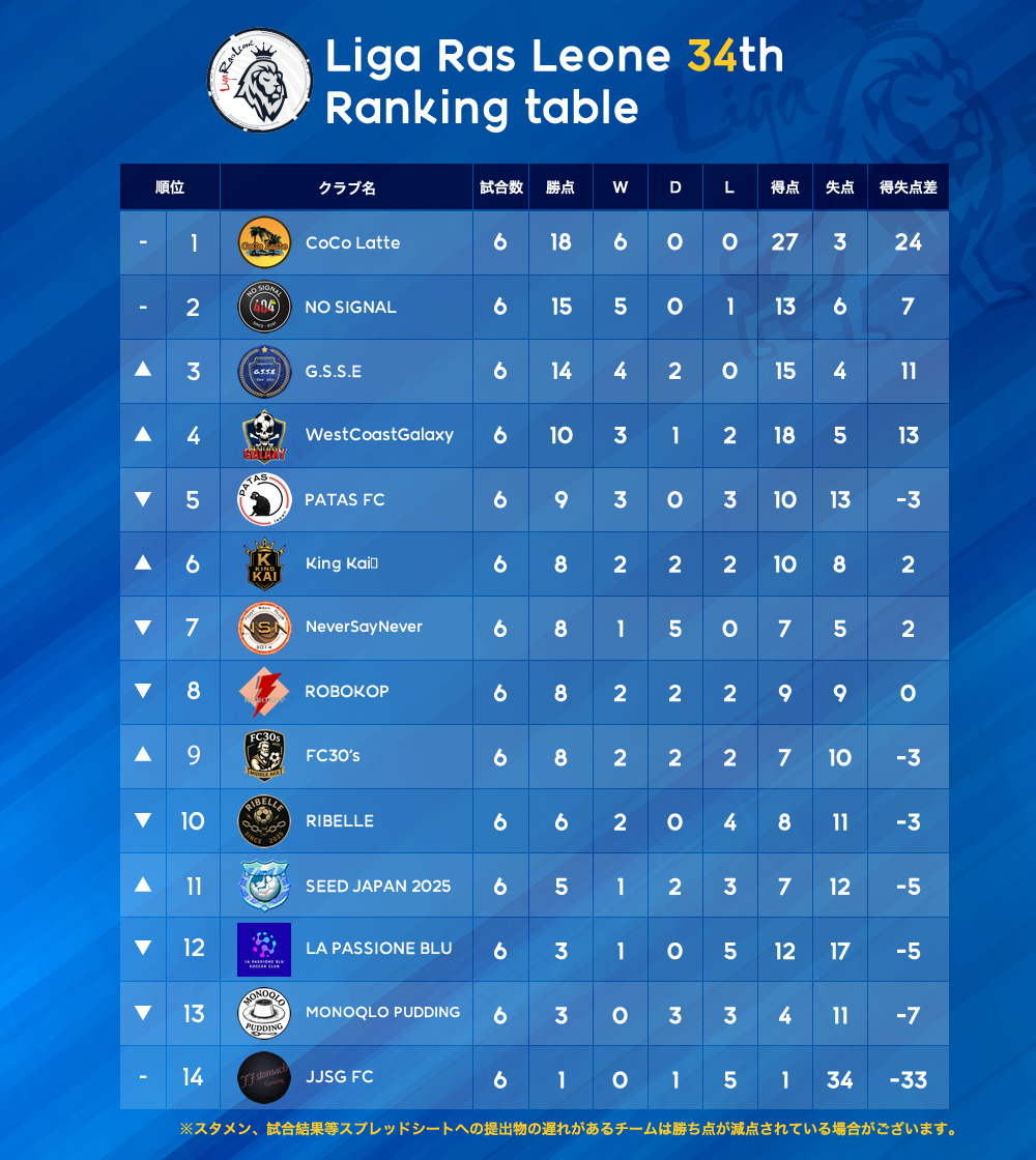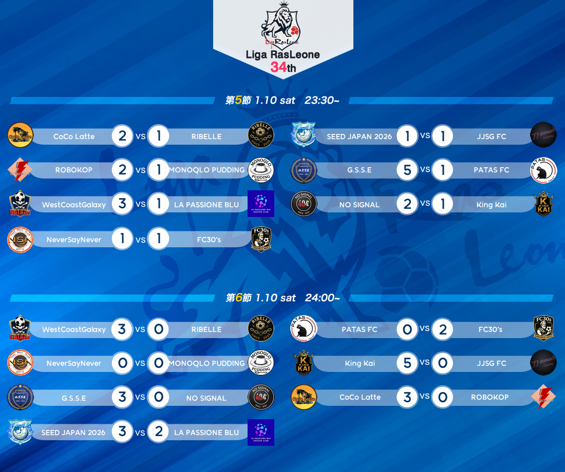 RasLeo27th Week#03 – 第5節・6節試合結果及び順位表。