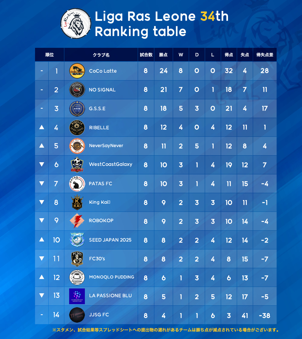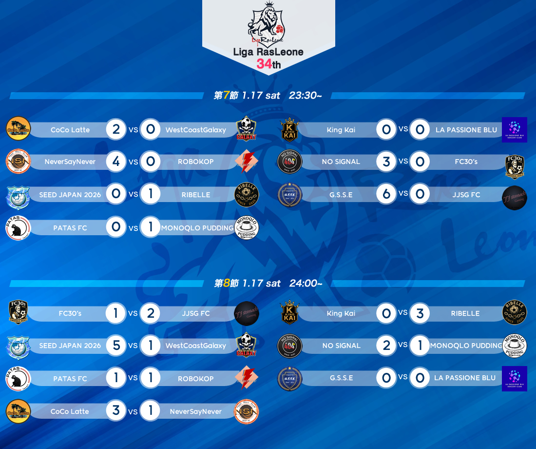 RasLeo26th Week#03 – 第5節・6節試合結果及び順位表。