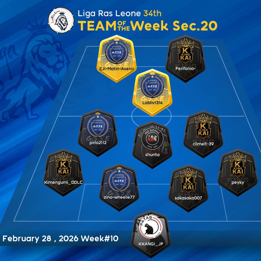 Liga Ras Leone 34th Team of the Week #102026.2.28(Sat) Sec.19,20